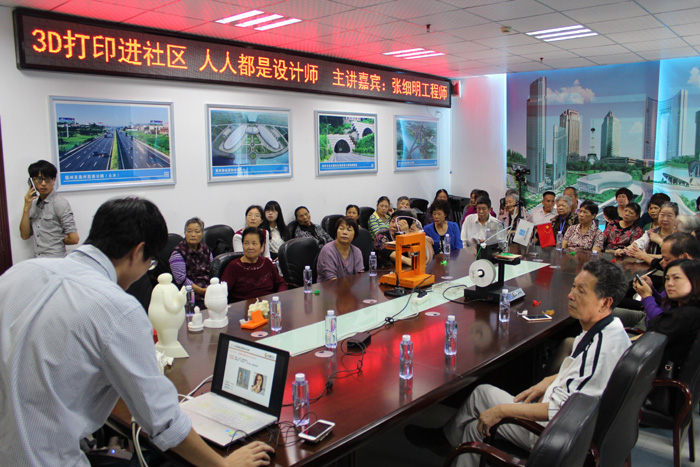 10月16日,由福州市社區(qū)大學(xué)主辦,晉安區(qū)新店鎮(zhèn)西莊社區(qū)、錦繡社區(qū)共同承辦,中建五局福建分公司協(xié)辦公益講座《3D打印進(jìn)社區(qū),人人都是設(shè)計(jì)師》走進(jìn)晉安區(qū)基層社區(qū),講座嘉賓是來自的福建海源三維打印高科技有限公司的張細(xì)明工程師,近60位社區(qū)民眾參加此次活動(dòng)。 講座向大家介紹了領(lǐng)先科技的一些3D打印應(yīng)用、 3D打印原理、3D打印技術(shù)分類及應(yīng)用、3D打印未來和3D打印與生活創(chuàng)新;重點(diǎn)介紹了3D打印在福州本地醫(yī)療、模具、文化創(chuàng)意等領(lǐng)域的應(yīng)用情況和方式、應(yīng)用生活中的小案例等;告訴大家3D打印和創(chuàng)新設(shè)計(jì)其實(shí)距離我們并不遙遠(yuǎn),門檻也未必高,關(guān)鍵不在于技術(shù)先進(jìn)與否,而在于人們對(duì)生活細(xì)節(jié)的觀察和領(lǐng)悟,通過有效學(xué)習(xí)和訓(xùn)練,人人都能成為3D打印設(shè)計(jì)師。聽講的學(xué)員都分享了3D打印的小禮品,他們希望3D打印走進(jìn)更多人的生活,讓社區(qū)的生活植入創(chuàng)新、科技的元素。(福州市社區(qū)大學(xué)供稿) |