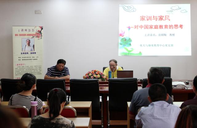 為深入貫徹習(xí)近平總書(shū)記關(guān)于家庭建設(shè)、家風(fēng)建設(shè)的系列重要講話精神,大力弘揚(yáng)中華傳統(tǒng)家庭美德,以好家風(fēng)促黨風(fēng)政風(fēng)校風(fēng)學(xué)風(fēng),營(yíng)造風(fēng)清氣正的好環(huán)境。2016年10月21日上午,福建師范大學(xué)文學(xué)院教授、福州市社區(qū)大學(xué)客座教授翁銀陶先生應(yīng)邀蒞臨學(xué)院廣達(dá)路校區(qū),為電大與繼續(xù)教育中心全體教職工做“家訓(xùn)與家風(fēng)”主題教育講座,講座由黨支部書(shū)記陳寶龍主持。
