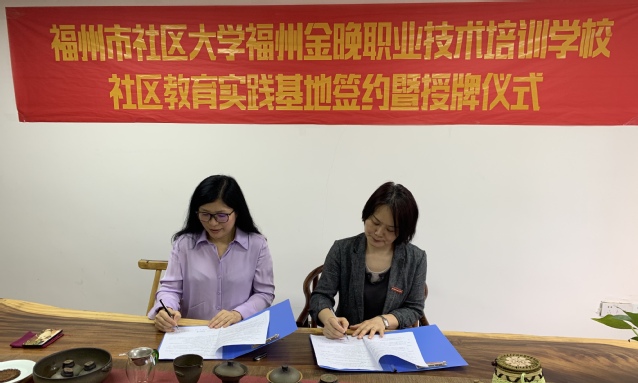 4月29日下午,福州市社區(qū)大學(xué)福州金晚職業(yè)技術(shù)培訓(xùn)學(xué)校社區(qū)教育實(shí)踐基地簽約暨授牌儀式在金晚職業(yè)技術(shù)培訓(xùn)學(xué)校舉行。福建省社區(qū)教育服務(wù)中心副主任吳盛雄、福州職業(yè)技術(shù)學(xué)院副校長、福州市社區(qū)大學(xué)校務(wù)委員會(huì)委員張?zhí)m英、福州市教育局職成處處長江堃俤、鼓樓區(qū)社區(qū)學(xué)院副院長張翊、福州金晚職業(yè)技術(shù)培訓(xùn)學(xué)校校長連淑玲及黃典勛出席此次活動(dòng)。簽約暨授牌儀式由電大工作部主任、福州市社區(qū)大學(xué)辦公室副主任王楣主持。