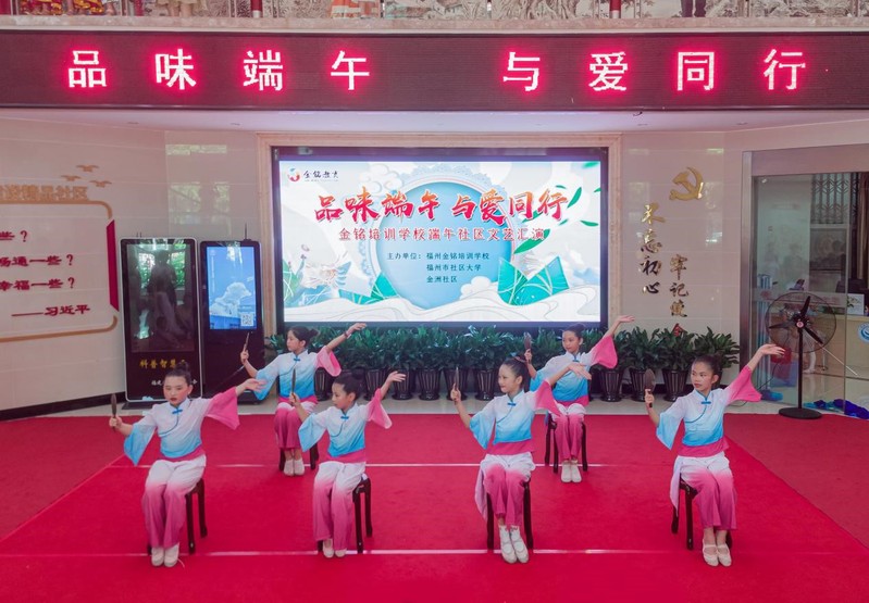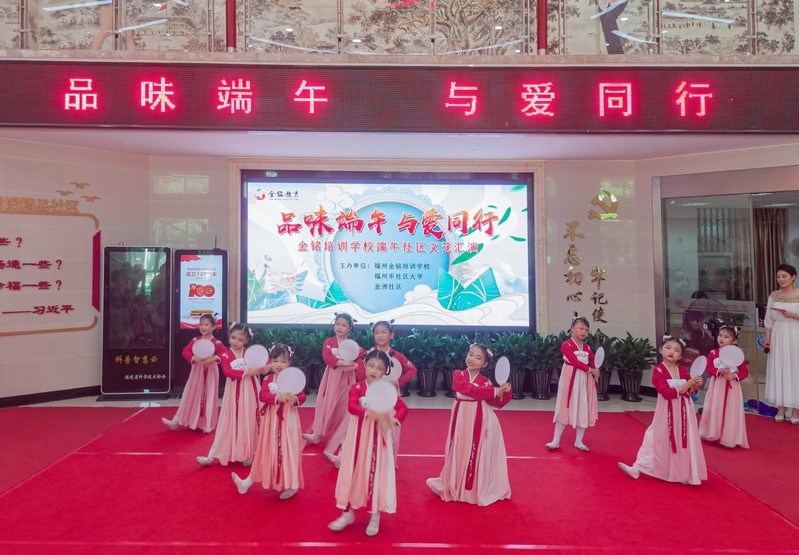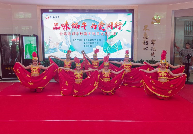 2021年6月14日上午,值2021年端午佳節(jié),福州社區(qū)大學(xué)主辦的”藝術(shù)進(jìn)社區(qū)”系列活動(dòng)在金洲社區(qū)拉開(kāi)帷幕,聯(lián)合金洲社區(qū)、福州金銘培訓(xùn)學(xué)校舉辦了“品味端午,與愛(ài)同行”社區(qū)文藝匯演。