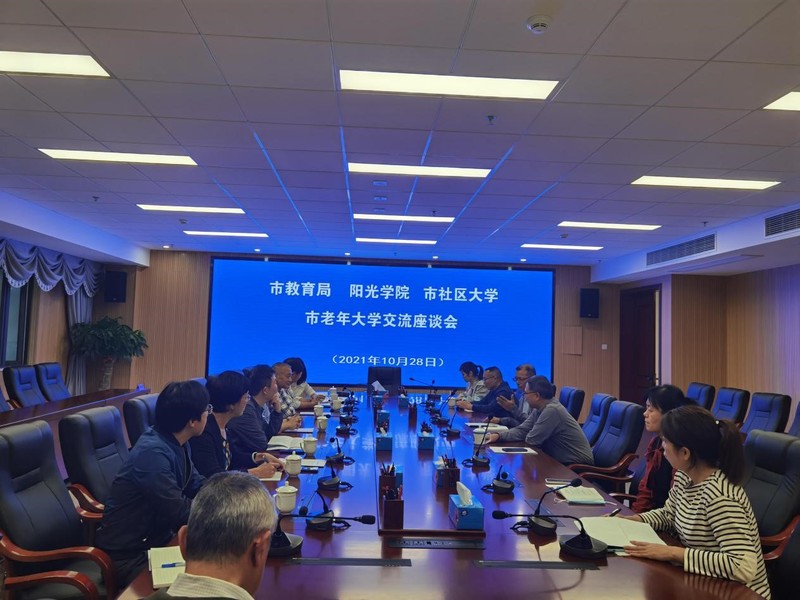 張?zhí)m英副校長介紹福州市社區(qū)大學終身教育工作開展情況、翁云鋒處長介紹福州市終身教育工作現(xiàn)狀,喬海曙校長介紹來校調(diào)研目的,三方就社區(qū)(老年)教育體系建設、終身教育工作經(jīng)驗、提升共建層次、合作辦學、創(chuàng)建社區(qū)教育學習品牌等相關問題進行了深入交流。