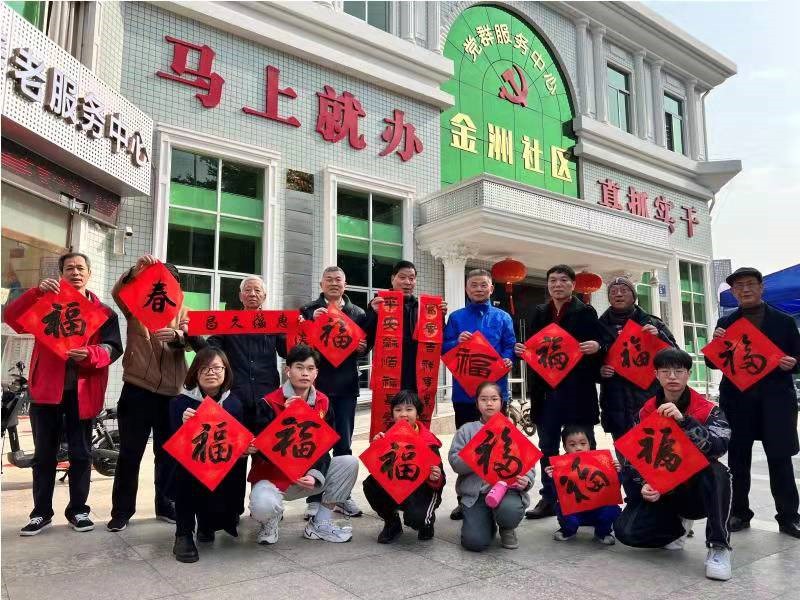 1月14、15日,活動分別在金斗、金洲社區(qū)拉開帷幕,福州市社區(qū)大學師資庫多位書法專業(yè)教師參加活動,為居民朋友們揮毫潑墨,寫出一副副筆精墨妙的春聯(lián)作品。