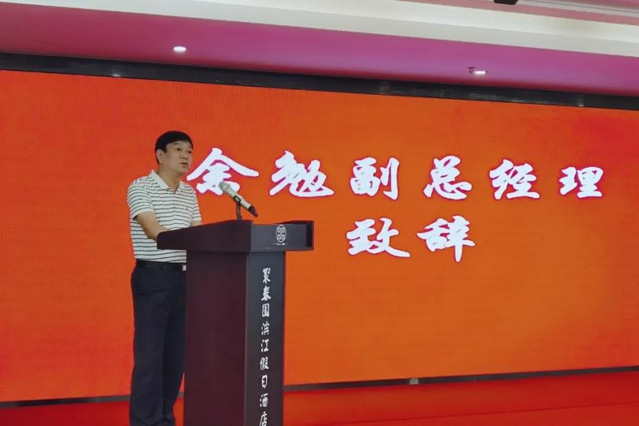 開班典禮上,我校文化創(chuàng)意學院旅游管理教研室主任李強、聚春園濱江假日酒店職工燕紅分別代表教師、學徒發(fā)言。