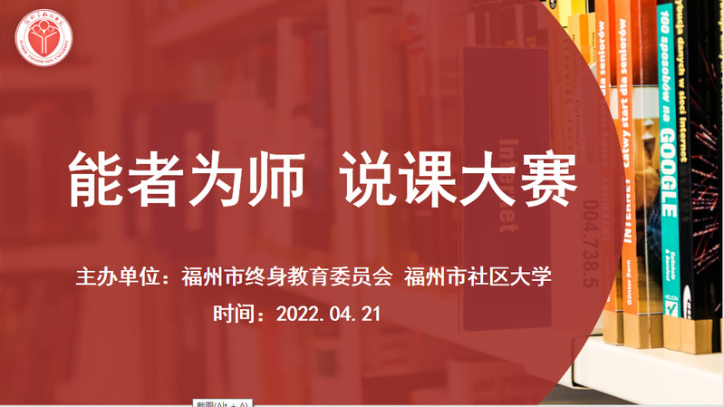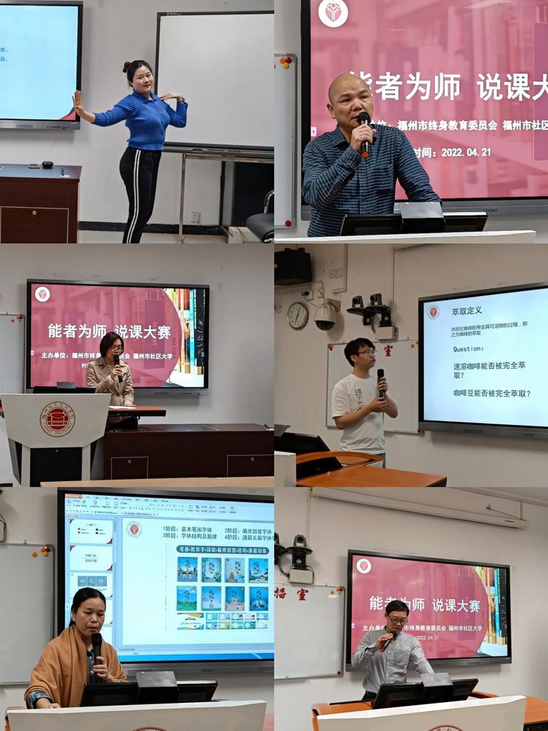 2022年4月21日,由福州市終身教育促進委員會、福州市社區(qū)大學組織舉辦的福州市第一屆“能者為師”說課大賽在福州開放大學舉行。經(jīng)過線上95個說課視頻作品初賽,精選15位選手參與線下決賽。福州職業(yè)技術學院電大工作部主任閆丹文,福州市教育局職業(yè)教育與成人教育處處長翁云鋒,福州職業(yè)技術學院繼續(xù)教育中心副主任陳曉鳳等參加活動。