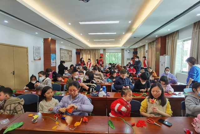 活動在金洲社區(qū)拉開帷幕,共有22組家庭參加了活動。福州市社區(qū)大學師資庫專業(yè)老師與福州職業(yè)技術學院建筑工程學院大學生志愿者一同為居民朋友們示范講解絲網(wǎng)花的制作過程,指導大家以家庭為單位親子共同制作絲網(wǎng)花。并在絲網(wǎng)花制作完成后,攜小朋友走進社區(qū)進行義賣。