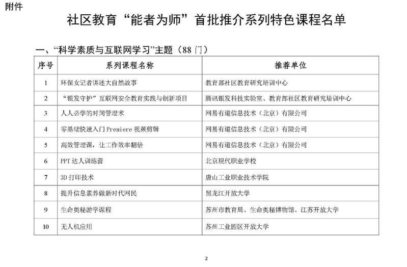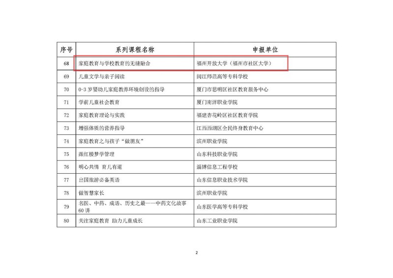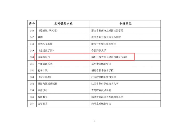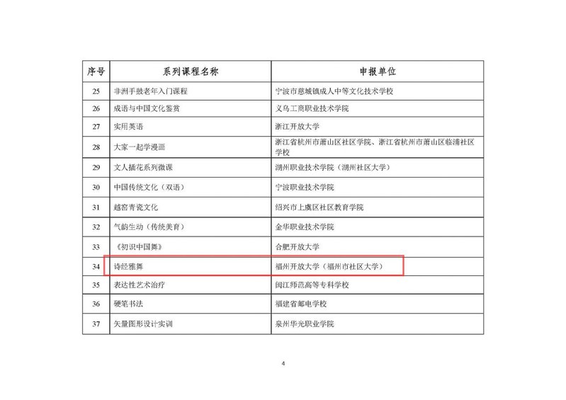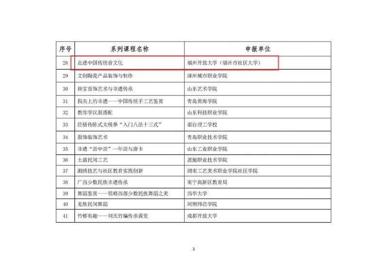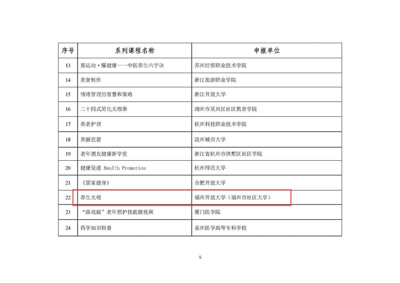 2022年12月26日,教育部職業(yè)教育與成人教育司發(fā)布《關(guān)于公布社區(qū)教育“能者為師”首批推介系列特色課程的公告》,福州市社區(qū)大學(xué)選送的《家庭教育與學(xué)校教育的無縫融合》《走進(jìn)中國(guó)傳統(tǒng)香文化》《詩經(jīng)雅舞》《國(guó)學(xué)與寫作》《養(yǎng)生太極》5門課程被評(píng)選為教育部社區(qū)教育“能者為師”系列特色課程。