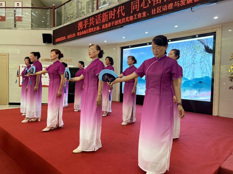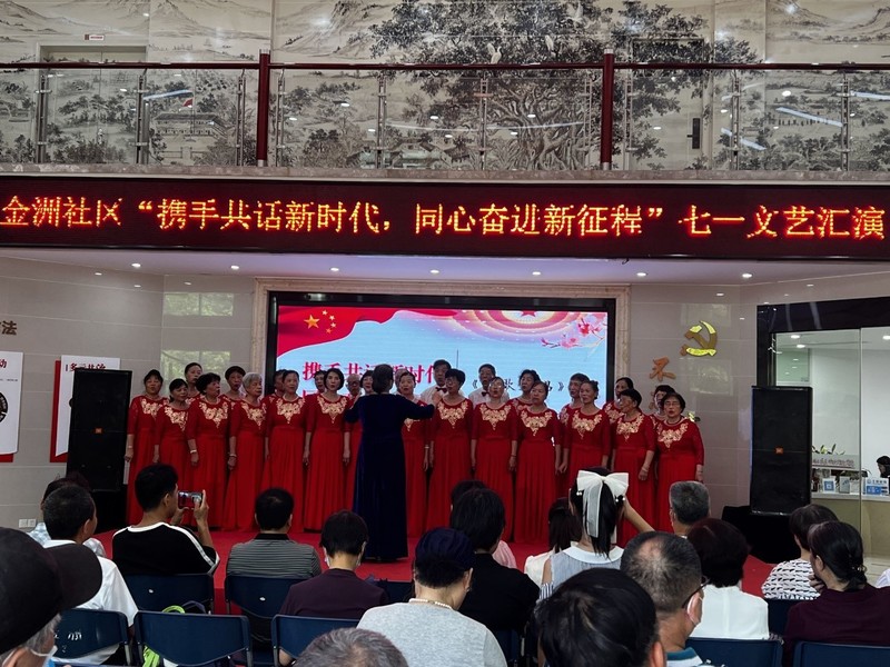 在七一建黨節(jié)來臨之際,為進(jìn)一步凝聚廣大黨員群眾對黨和祖國的熱愛之情,豐富社區(qū)居民精神文化生活,7月1日,福州市社區(qū)大學(xué)金洲社區(qū)直屬教學(xué)點(diǎn)舉辦“攜手共話新時代,同心奮進(jìn)新征程”七一文藝匯演。福州市社區(qū)大學(xué)、青禾社工、榕禾社工、金洲社區(qū)合唱班等單位選送了朗誦、舞蹈、合唱、模特表演等內(nèi)容豐富的節(jié)目。整場文藝演出形式多樣,主題鮮明,為現(xiàn)場觀眾獻(xiàn)上了一場精彩的視聽盛宴?;顒映浞终故玖诵聲r代美好生活下人民昂揚(yáng)奮進(jìn)的精神面貌,歌頌了黨的豐功偉績和祖國的繁榮富強(qiáng),激發(fā)了社區(qū)全體黨員干部、居民群眾愛社區(qū)、建社區(qū)的熱情,以實(shí)際行動向黨的生日獻(xiàn)禮。