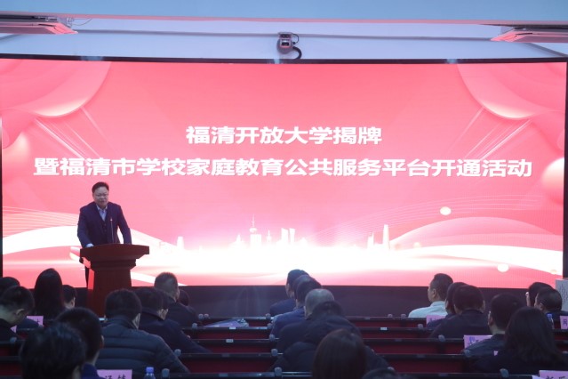 12月4日,福清開(kāi)放大學(xué)揭牌暨福清市學(xué)校家庭教育公共服務(wù)平臺(tái)開(kāi)通活動(dòng)在福清市教師進(jìn)修學(xué)校舉辦。福建開(kāi)放大學(xué)校長(zhǎng)吳國(guó)榮,我校校長(zhǎng)陳念東,福清市市長(zhǎng)吳永忠、副市長(zhǎng)鄭云、教育局局長(zhǎng)王豪杰等為福清開(kāi)放大學(xué)揭牌,并啟動(dòng)福清市學(xué)校家庭教育公共服務(wù)平臺(tái)。