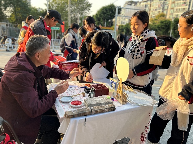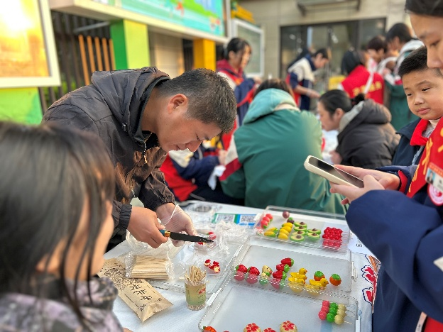 活動(dòng)不僅匯聚了豐富多彩的傳統(tǒng)習(xí)俗,還融入了現(xiàn)代創(chuàng)意元素,吸引了眾多市民前來參與,共同感受冬日里的溫暖與歡樂。美食區(qū),傳統(tǒng)手工餃子、棉花糖與創(chuàng)新小吃泰露楚香氣撲鼻,引人品嘗;福文化區(qū),霍尚軍與陳志紅老師揮毫潑墨,書寫吉祥春聯(lián)與書簽,傳遞節(jié)日喜慶;手工體驗(yàn)區(qū),居民親手設(shè)計(jì)熱縮片鑰匙扣,彰顯社區(qū)文化活力與創(chuàng)造力,共同感受冬日溫暖與歡樂。