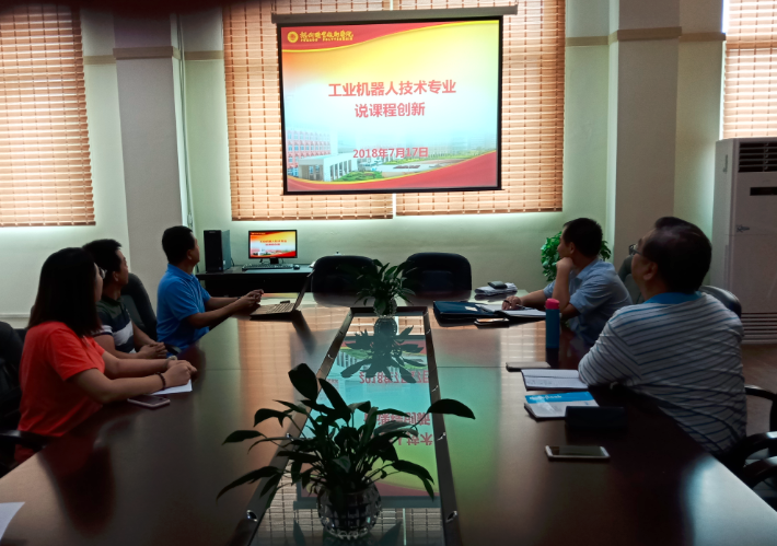 2018年7月份,由各專業(yè)主任組織開展“說課程創(chuàng)新”比賽。經(jīng)過各專業(yè)教師的角逐,在本次比賽中,張建彬老師獲得工業(yè)機(jī)器人技術(shù)專業(yè)第一名,薛曼芳老師獲得獲得無人機(jī)應(yīng)用技術(shù)專業(yè)第一名,蔡宗達(dá)老師獲得應(yīng)用電子技術(shù)專業(yè)第一名,凃嘉勝老師獲得智能產(chǎn)品開發(fā)專業(yè)第一名。