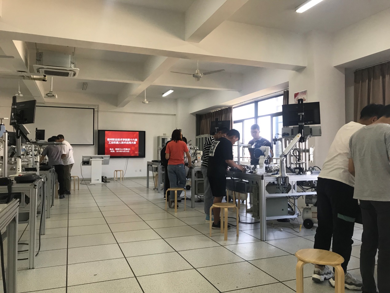 經(jīng)過(guò)近一個(gè)月的精心籌備,2019年10月16日機(jī)器人學(xué)院在職教中心4樓成功舉辦“一課一技能”暨第十六屆技能競(jìng)賽“工業(yè)機(jī)器人應(yīng)用技術(shù)”競(jìng)賽項(xiàng)目。