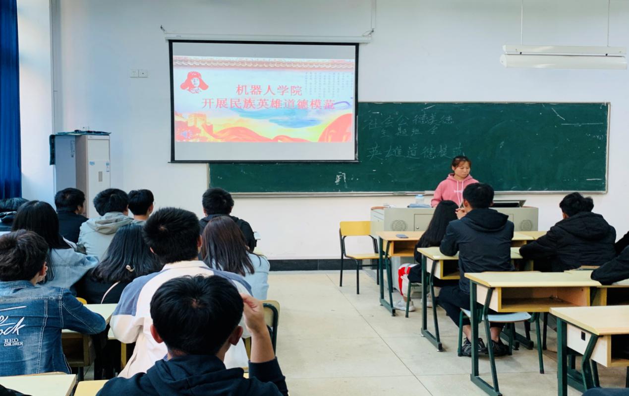 為進(jìn)一步加強(qiáng)大學(xué)生對道德模范民族英雄的認(rèn)知,培養(yǎng)大學(xué)生向道德模范民族英雄學(xué)習(xí),機(jī)器人學(xué)院19級應(yīng)用電子技術(shù)專業(yè)利用晚自習(xí)開展向英雄道德模范學(xué)習(xí)的活動。