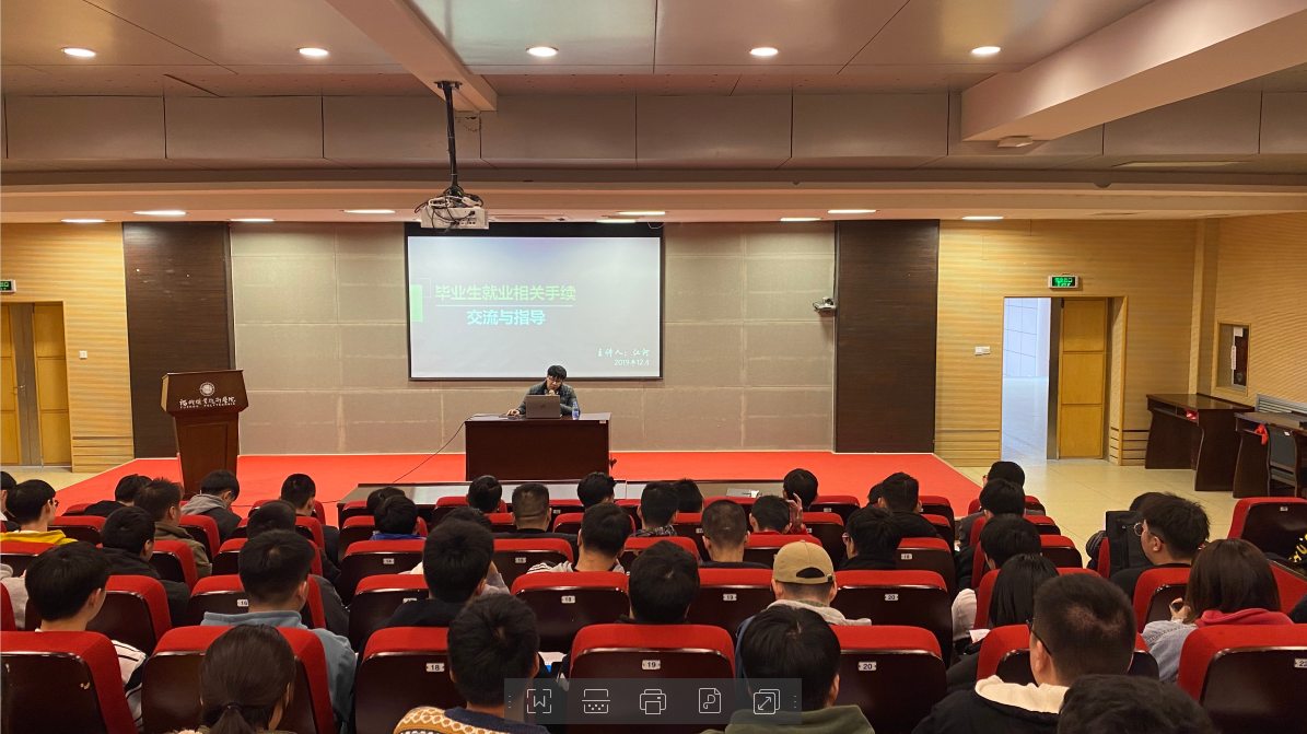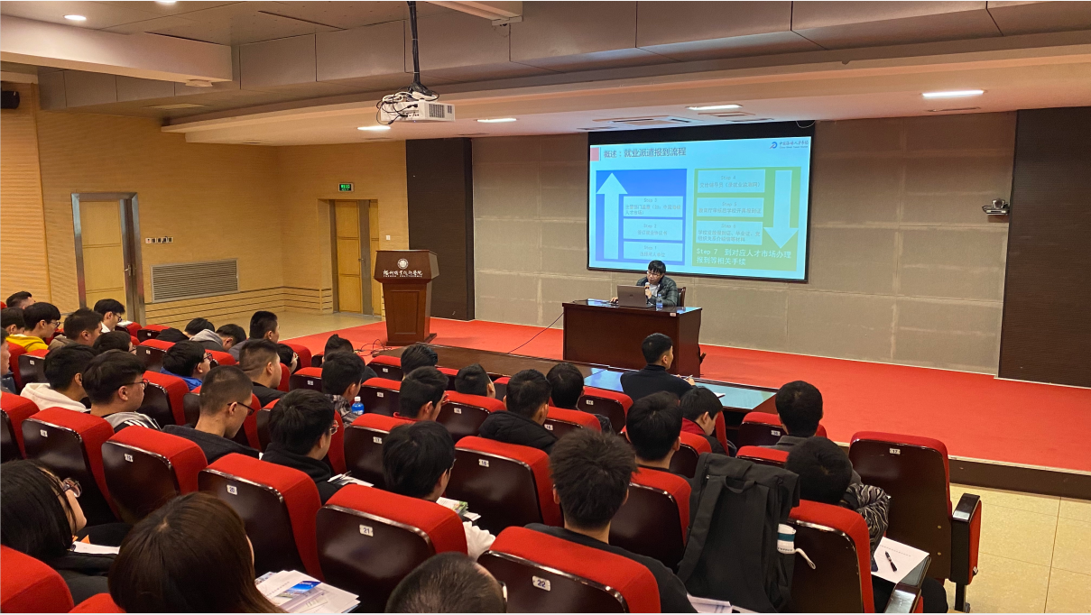 12月30日下午機(jī)器人學(xué)院在學(xué)術(shù)報(bào)告廳開展《畢業(yè)生就業(yè)相關(guān)手續(xù)交流與指導(dǎo)講座》,本次講座很榮幸地邀請(qǐng)到海峽人才市場(chǎng)江河老師作為主講嘉賓,機(jī)器人學(xué)院2020屆全體畢業(yè)生參加了此次講座。