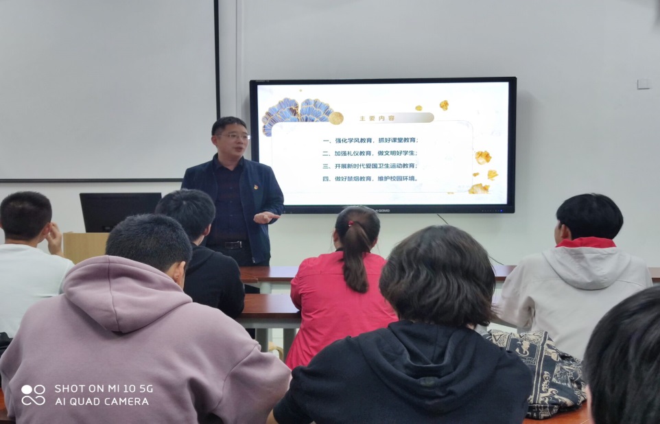 本次班會選取了眾多大學生比較關心的話題作為討論的題目,其中包括學風建設、文明禮儀、內務衛(wèi)生及校園禁煙等;同學們非常重視此次班會,在班主任張少鵬老師帶領下大家圍繞班會主題踴躍發(fā)言、各抒己見;班主任圍繞新學期學習、紀律、生活等方面與學生進行交流,重點幫助學生認識自己存在的不足與問題,擺正自己的位置,確立新學期的努力方向,樹立正確的學習目標,力爭讓每一個學生都能在新學期中展現(xiàn)出一個全新的自我。
