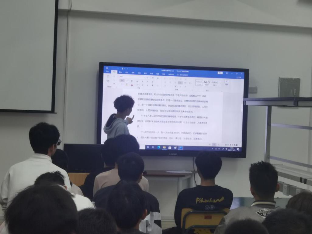 班會(huì)首先向同學(xué)們介紹了憲法的基本原則和主要內(nèi)容、憲法在我們?nèi)粘I钪械淖饔靡约叭绾尉S護(hù)憲法的尊嚴(yán)。接著,圍繞著憲法對于“邪教”和“毒品”的規(guī)定分別向同學(xué)們闡釋了其危害,讓學(xué)生們清晰意識(shí)到大學(xué)生“法制教育”的重要性,引導(dǎo)大學(xué)生正確認(rèn)識(shí)社會(huì)中的各種套路和手段,教同學(xué)們珍愛生命,做一名合格的大學(xué)生。最后,對參會(huì)同學(xué)進(jìn)行法律知識(shí)考試,以加深和鞏固同學(xué)們的法律常識(shí)。