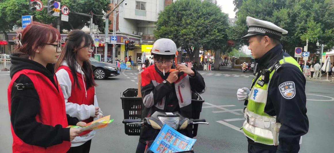 為深入貫徹落實(shí)黨的二十大精神,持續(xù)推動(dòng)市民文明素質(zhì)和社會(huì)文明程度提高,扎實(shí)推進(jìn)全國文明城市建設(shè),2023年12月5日,智能工程系學(xué)生黨支部與鼓樓區(qū)交警大隊(duì)楊橋中隊(duì)黨支部聯(lián)合開展“弘揚(yáng)志愿服務(wù)精神 倡導(dǎo)文明交通行為”主題活動(dòng)。