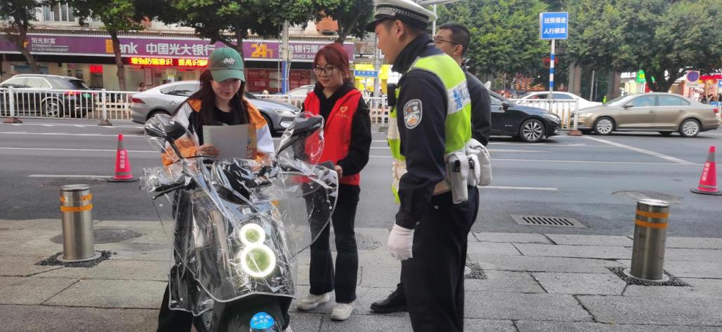 活動(dòng)期間,師生黨員志愿者們與交警走進(jìn)南后街,現(xiàn)場對市民未佩戴頭盔、橫穿馬路、逆向行駛等不文明交通行為進(jìn)行勸導(dǎo),耐心提醒市民朋友出行時(shí)自覺走斑馬線,堅(jiān)決摒棄交通陋習(xí)等,并向過往行人發(fā)放文明交通倡議書,倡導(dǎo)大家遵守交通規(guī)則,特別對習(xí)慣“搶時(shí)間、快送貨”的快遞小哥,志愿者們更是主動(dòng)強(qiáng)調(diào)提醒佩戴安全頭盔和不闖紅燈的重要性。