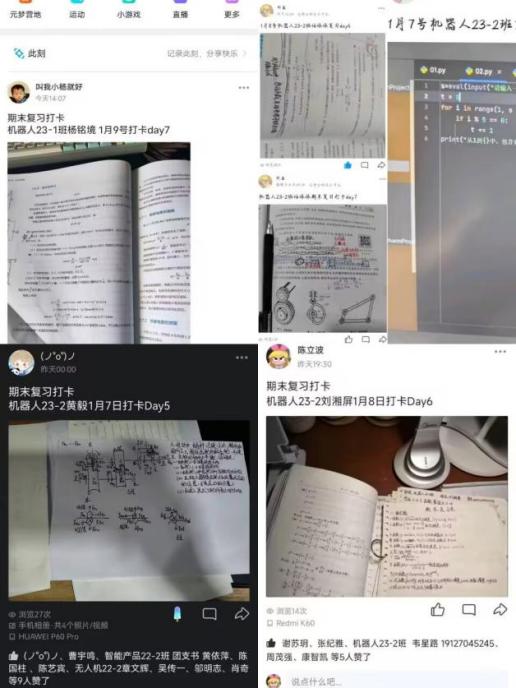 我院開展了學(xué)風(fēng)督察專項(xiàng)行動,對各班級實(shí)到、曠課、病假以及遲到等情況進(jìn)行詳細(xì)記錄,每周通報(bào)課前紀(jì)律散漫現(xiàn)象,糾正學(xué)風(fēng)不端行為,通過督課督學(xué),讓全體學(xué)生樹立紀(jì)律意識。同時(shí)舉辦了學(xué)習(xí)筆記打卡活動,同學(xué)們積極參與、互相鞭策,按時(shí)按量完成學(xué)習(xí)任務(wù),積極在群里交流探討復(fù)習(xí)心得,學(xué)習(xí)氛圍濃郁,促進(jìn)學(xué)院良好學(xué)風(fēng)的形成。