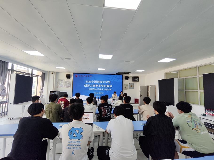 謝老師從賽事規(guī)則、文件變化及賽道變化三個(gè)方面出發(fā),結(jié)合往屆“互聯(lián)網(wǎng)+”大賽的金獎(jiǎng)項(xiàng)目對(duì)2024中國(guó)國(guó)際大學(xué)生創(chuàng)新大賽展開(kāi)深入剖析,并根據(jù)我院的專業(yè)特色就創(chuàng)新大賽的選題方向及無(wú)人機(jī)、機(jī)器人相關(guān)產(chǎn)業(yè)發(fā)展進(jìn)行針對(duì)性輔導(dǎo)。同學(xué)們踴躍提問(wèn),積極互動(dòng),現(xiàn)場(chǎng)氣氛熱烈。
