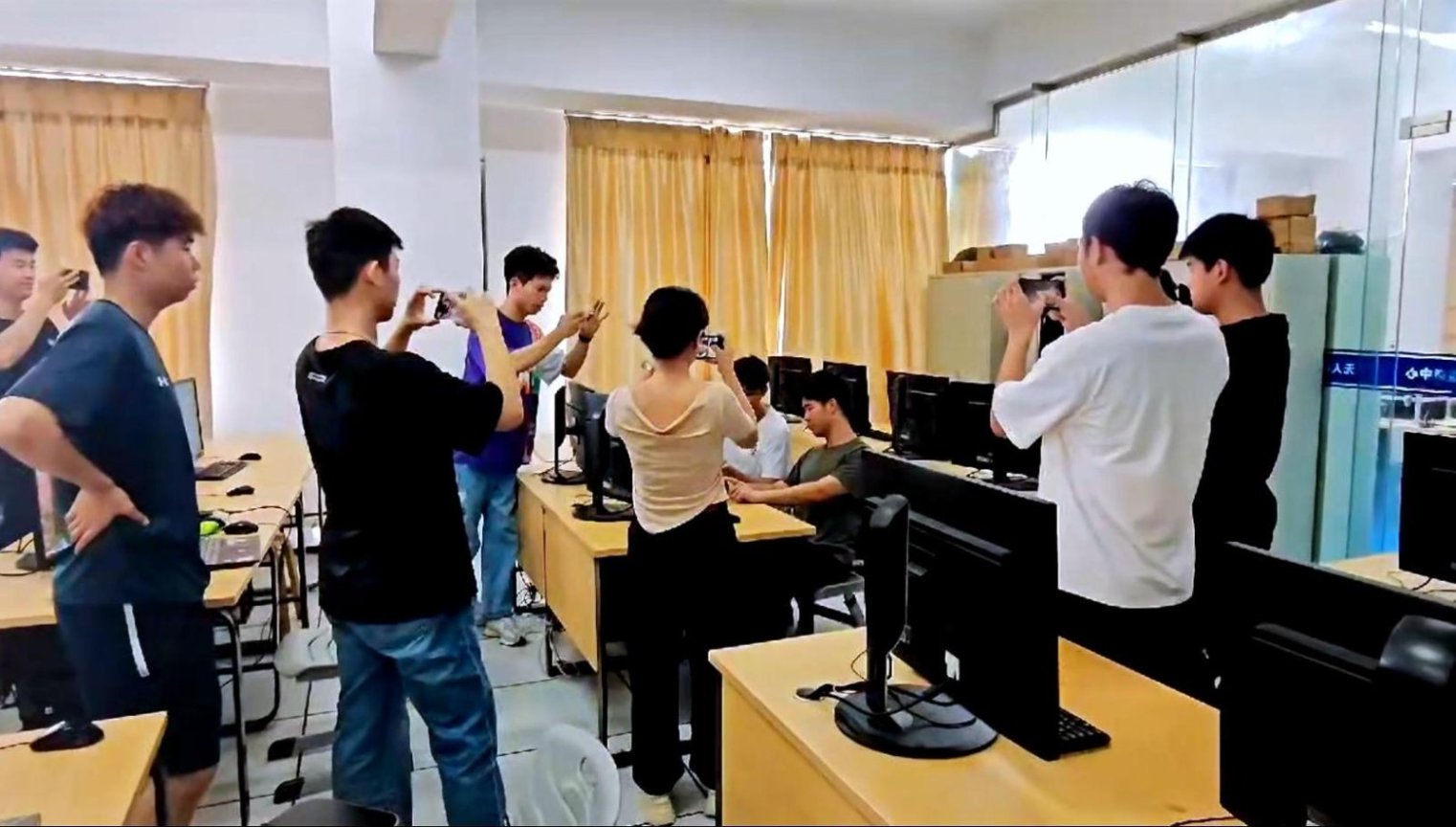 學(xué)員和老師一起拍攝視頻