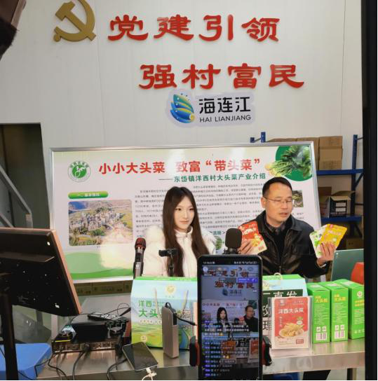 “云端菜籃子”小分隊(duì)和洋西村“大頭菜”書記直播推介農(nóng)產(chǎn)品