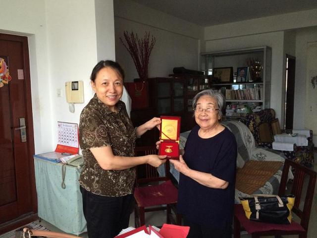 抗戰(zhàn)離休干部為了中華民族的偉大解放事業(yè),拋頭顱灑熱血,用血肉之軀維護(hù)了我們國家和民族的自由和尊嚴(yán),如今我們國泰民安,他們卻風(fēng)燭殘年,但黨和政府從未忘記這些功臣。9月2日下午,受上級老干工作部門及學(xué)院黨政領(lǐng)導(dǎo)班子委托,學(xué)院分管老干工作的紀(jì)委沈錦華書代領(lǐng)學(xué)院老干工作部門的工作人員,看望、慰問參加曾抗日戰(zhàn)爭的學(xué)院離休干部陳鳳珠同志及已于今年4月份去世的耿科同志的家屬,向他們致以崇高的敬意,并送上由中共中央、國務(wù)院、中央軍委頒發(fā)的中國人民抗日戰(zhàn)爭勝利70周年紀(jì)念章及慰問金。