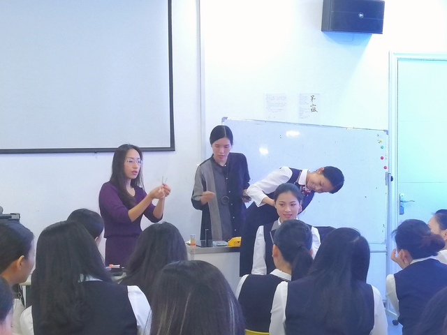 2018年10月27日,我系空中乘務(wù)、廣告設(shè)計(jì)與制作兩個專業(yè)七十多位學(xué)生,在二號教學(xué)樓418教室參與了“職場禮儀-化妝教學(xué)講座”。今日和煦的陽光柔和地照進(jìn)教室,專業(yè)的化妝老師如陽光般溫柔地為我們講解化妝基礎(chǔ)知識,從膚質(zhì)到妝容面面俱到。不僅如此,老師還請同學(xué)上臺,親手進(jìn)行現(xiàn)場演示講解,讓每位同學(xué)對自己和化妝有了或多或少的了解。期間同學(xué)們積極地與老師進(jìn)行互動和詢問,大家紛紛表示受益匪淺。