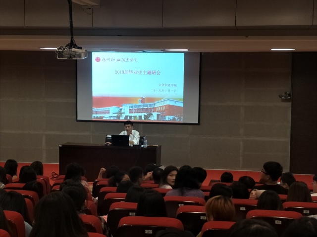 為扎實做好2019屆畢業(yè)生的離校工作,確保畢業(yè)生文明、安全、有序地離校,2019年6月1日,文化創(chuàng)意學院在學術(shù)報告廳召開了畢業(yè)生大會。