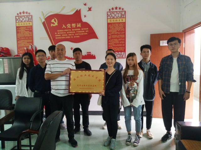 福州職業(yè)技術(shù)學院文化創(chuàng)意系于2019年10月31日在閩侯縣岐頭村舉行校外實踐基地授牌儀式。岐頭村村委干部和我系師生共10余人參加。