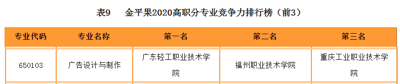 5月6日,“金平果”首次發(fā)布“2020高職分專業(yè)競爭力排行榜”,我校廣告設(shè)計與制作專業(yè)在全國同類專業(yè)測評中取得全國第二名成績。