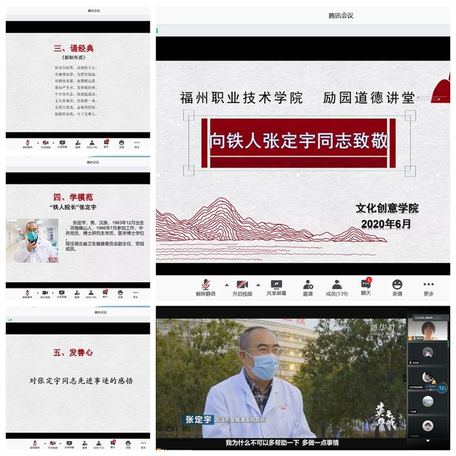 為突出榜樣力量,引導(dǎo)青年學(xué)子學(xué)習(xí)抗疫英雄不懼困難、擔(dān)當(dāng)作為的優(yōu)秀品質(zhì),引領(lǐng)其堅(jiān)定理想信念、踐行使命擔(dān)當(dāng),文化創(chuàng)意學(xué)院于6月30日開展了題為“勇于擔(dān)當(dāng) 共克時(shí)艱——致敬‘鐵人院長’張定宇”的勵(lì)園道德講堂活動(dòng)。