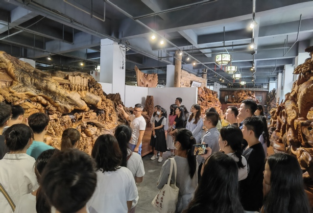 6月6日,福州職業(yè)技術(shù)學(xué)院文化創(chuàng)意系學(xué)生黨支部組織師生黨員、入黨積極分子、習(xí)近平新時(shí)代中國(guó)特色社會(huì)主義思想讀書社成員,聯(lián)合全國(guó)、全省黨建工作樣板支部——福建農(nóng)林大學(xué)木工專業(yè)黨支部、文化產(chǎn)業(yè)管理專業(yè)學(xué)生黨支部,赴學(xué)校技能大師工作室領(lǐng)辦人余春洲大師創(chuàng)辦的福州市首邑木雕有限公司開展黨史學(xué)習(xí)教育現(xiàn)場(chǎng)教學(xué)活動(dòng),聆聽“守藝人”說(shuō)黨史,感悟非物質(zhì)文化遺產(chǎn)里的紅色文化。