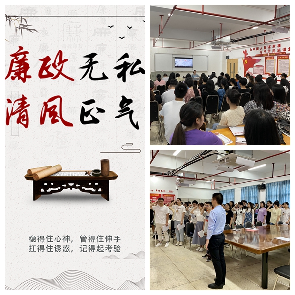 為深入開展黨風(fēng)廉政建設(shè)和反腐倡廉宣傳教育活動(dòng),文化創(chuàng)意學(xué)院結(jié)合黨史學(xué)習(xí)教育,于2021年6月16-17日面向全體2021屆畢業(yè)生開展以“廉政無私,清風(fēng)正氣”為主題的廉政主題教育。