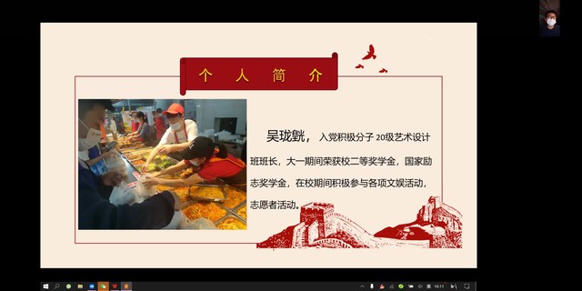 此次活動(dòng)邀請(qǐng)了張鵬彬、吳瓏皝、許鑒偉、吳楊麗、谷浩田五位同學(xué)進(jìn)行志愿服務(wù)心得分享,他們通過(guò)講述自己的志愿服務(wù)經(jīng)歷,向同學(xué)們傳遞著滿滿的正能量和新時(shí)代雷鋒精神。高凌飛老師在會(huì)上表示:“希望文創(chuàng)學(xué)子青春有我、使命擔(dān)當(dāng)。疫情警報(bào)不解除,志愿服務(wù)不停歇。在疫情防控期間,展現(xiàn)更多的“奉獻(xiàn)、友愛、互助、進(jìn)步”的志愿精神?!?/span>