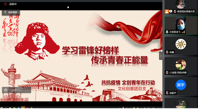 為進(jìn)一步學(xué)習(xí)和弘揚(yáng)雷鋒精神,培育和踐行社會(huì)主義核心價(jià)值觀,樹立奉獻(xiàn)意識(shí),號(hào)召文創(chuàng)系廣大青年學(xué)生加入到校園抗擊疫情的志愿服務(wù)中來(lái),我系于2022年3月23日開展“學(xué)習(xí)雷鋒好榜樣,傳承青春正能量”線上分享會(huì)。會(huì)議由我系團(tuán)總支書記高凌飛老師、20級(jí)和21級(jí)學(xué)生干部、入黨積極分子和青年志愿者代表參加。