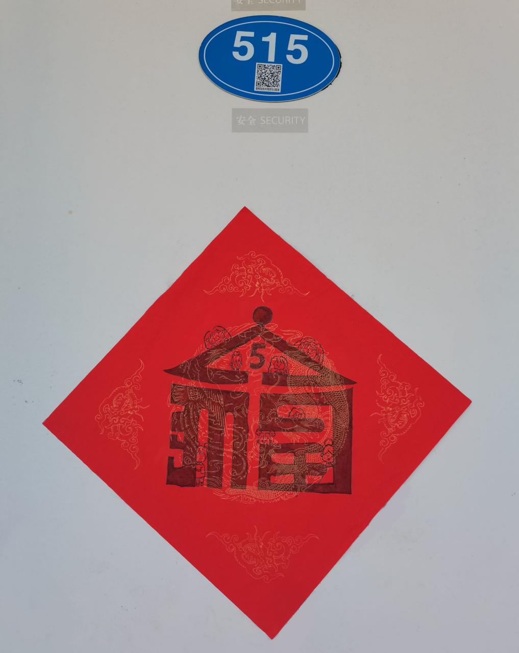 活動中同學們熱情高漲,積極參與,大家以“福”字為主題,在紅色的福字斗方宣紙上精心設計宿舍福貼,一幅幅創(chuàng)意、生動且富有寓意的作品躍然紙上。