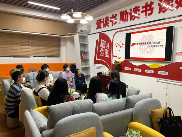 讀書社成員通過自身學(xué)習(xí),探索中國民俗中的“福文化”,并在活動(dòng)中向同學(xué)們宣講。大家積極發(fā)言,現(xiàn)場討論熱烈。通過探尋“福文化”這一過程,提高同學(xué)們對(duì)“福文化”的認(rèn)識(shí),在活動(dòng)中更深刻體會(huì)中國共產(chǎn)黨人為中國人民謀幸福、為中華民族謀復(fù)興的初心和使命。同學(xué)們也紛紛表示會(huì)倍感珍惜來之不易的幸福生活,今后會(huì)更加努力奮進(jìn),用“強(qiáng)國有我”的青春誓言,踐行新時(shí)代大學(xué)生的擔(dān)當(dāng)和使命,迎接黨的二十大召開。