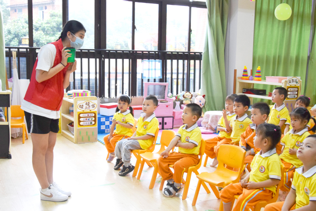 活動(dòng)中,我們的志愿者給小朋友們開展了一堂生動(dòng)的垃圾分類課。課上,志愿者們通過課堂講解、視頻、互動(dòng)搶答等形式,為小朋友們介紹了垃圾分類的重要性并教小朋友們識(shí)別“四色桶”,加深對(duì)垃圾分類的認(rèn)識(shí)。課后,我系志愿者和小朋友們共同演唱由《孤勇者》改編的歌曲《環(huán)保者》,將整個(gè)活動(dòng)的氣氛推向高潮。