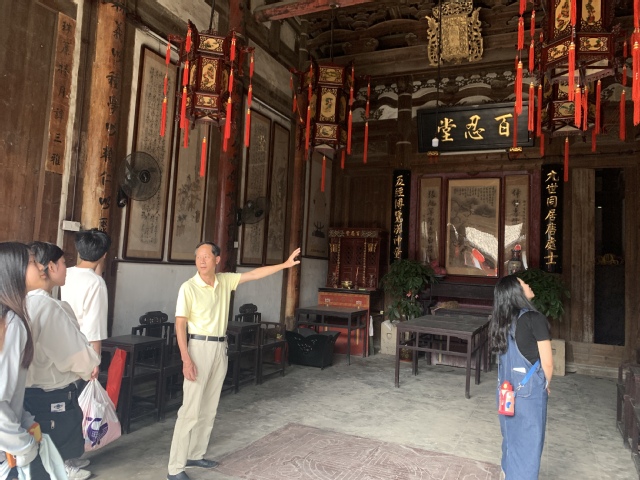 大本厝理事會會長張孟穎是一名有著46年黨齡的老黨員,他作為此次學(xué)習(xí)活動的特邀講解員,向來訪師生詳細介紹了大本厝的百年歷史,尤其是在新中國成立后,張氏族人順應(yīng)歷史潮流,傳承中華民族傳統(tǒng)文化,踐行社會主義核心價值觀,弘揚“行仁義事,存忠孝心”的優(yōu)良家風(fēng)和孝廉文化讓人受益匪淺。對大本厝有了基本了解后,文創(chuàng)學(xué)子立足自身專業(yè)技能,為古厝設(shè)計了線上vr場景展示、整理古厝及內(nèi)部景點介紹資料,為保留這座老宅的歷史風(fēng)貌,傳承文明鄉(xiāng)風(fēng)貢獻了綿薄之力。之后,文化創(chuàng)意系學(xué)生黨支部還在大本厝所在的厚美村開展了垃圾分類、疫情防控知識進社區(qū)等志愿服務(wù)活動。