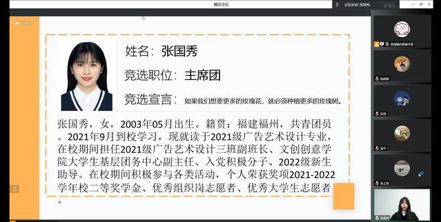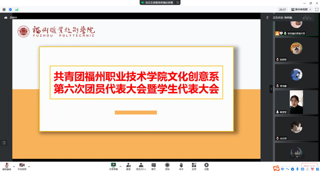 福州職業(yè)技術(shù)學(xué)院文化創(chuàng)意系第六次團員代表大會暨學(xué)生代表大會于2022年12月17日通過線上形式順利召開。
