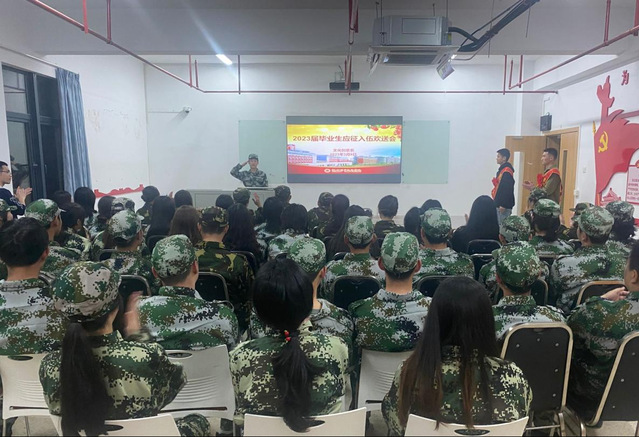 會上,輔導(dǎo)員老師為入伍新兵同學(xué)授大紅花、佩戴“光榮入伍”綬帶,并給同學(xué)們送上衷心的祝福與誠摯的慰問。邀請2022級退役士兵王幫雄同學(xué)在現(xiàn)場分享他的軍旅生活并發(fā)表參軍感言,同時對新戰(zhàn)友送上祝福,希望新戰(zhàn)友能夠在軍營中刻苦磨練自己,成為國家的棟梁。光榮入伍的新兵同學(xué)也與到場同學(xué)們交流了自己的入伍動機(jī),并表示一定會淬煉成鋼,報效祖國和人民。輔導(dǎo)員老師代表文創(chuàng)系祝賀同學(xué)們即將啟程入伍去部隊實現(xiàn)鑄魂逐夢、強(qiáng)軍報國的偉大夢想。希望同學(xué)們把學(xué)到的科學(xué)文化知識帶到軍營去,把新時代精神運(yùn)用到部隊訓(xùn)練、學(xué)習(xí)中,苦練本領(lǐng),嚴(yán)守紀(jì)律,尊敬領(lǐng)導(dǎo),團(tuán)結(jié)戰(zhàn)友,春風(fēng)沐雨花盛開,前程似錦苦寒來。