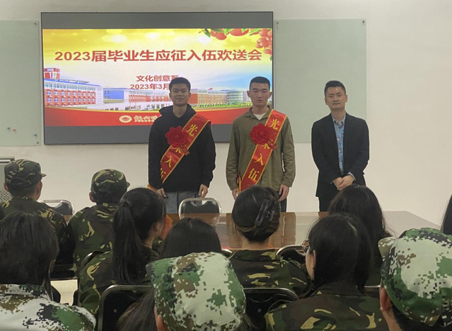 3月9日,文化創(chuàng)意系于特教樓1014為我系即將踏入軍旅征程的兩名2023屆應(yīng)征入伍畢業(yè)生舉辦歡送會。