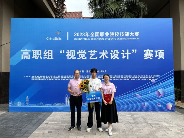 2023全國職業(yè)院校技能大賽高職組“視覺藝術(shù)設(shè)計”賽項于9月25日至28日在云南輕紡職業(yè)學(xué)院舉辦。本次比賽共有來自全國71支代表隊參加,經(jīng)過激烈角逐,由藝術(shù)設(shè)計專業(yè)商春玲副教授指導(dǎo)的2021級藝術(shù)設(shè)計班張秦同學(xué)獲得2023年全國職業(yè)院校技能大賽視覺藝術(shù)設(shè)計賽項一等獎;同時商春玲老師也獲得優(yōu)秀指導(dǎo)教師獎。