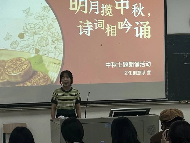 為弘揚(yáng)中華優(yōu)秀傳統(tǒng)文化,營(yíng)造中秋節(jié)日氛圍,文化創(chuàng)意系于9月27日晚舉辦“明月攬中秋,詩(shī)詞相吟誦”朗誦比賽活動(dòng)。