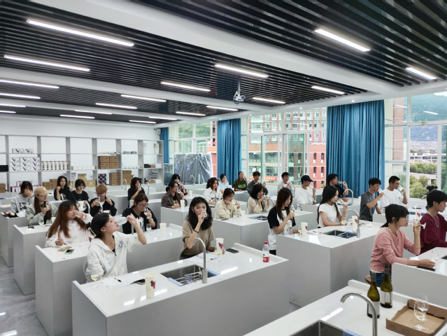 培訓邀請的是福州飲覺文化創(chuàng)始人及教學總監(jiān)黃昕到校分享葡萄酒專業(yè)知識以及比賽和備賽經驗,餐飲智能管理專業(yè)學生全體參訓?;顒庸卜譃閮刹糠郑阂皇瞧咸丫茖I(yè)知識講座;二是酒水服務技能培訓及“一課一技能”活動“酒水服務”賽項預選賽?;顒佑刹惋嬛悄芄芾韺I(yè)主任李強主持,孫瓊、劉趙等餐飲智能管理專業(yè)全體教師也參加了本次活動。