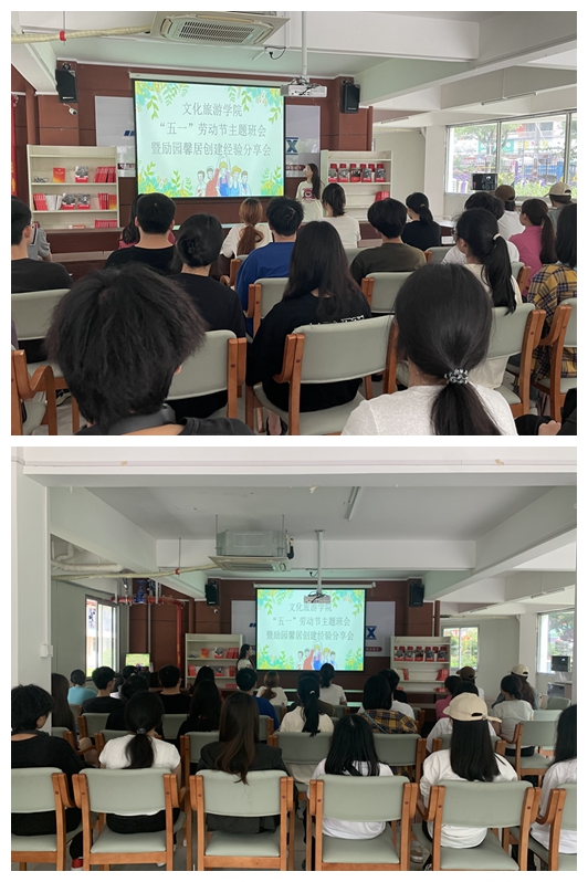 活動(dòng)二:“五一”勞動(dòng)節(jié)主題班會(huì)暨勵(lì)園馨居建設(shè)經(jīng)驗(yàn)分享會(huì)。文化旅游學(xué)院組織學(xué)生于“一站式”學(xué)生社區(qū)召開“五一”勞動(dòng)節(jié)主題班會(huì),弘揚(yáng)勞模精神、勞動(dòng)精神和工匠精神,營(yíng)造勤勞奮進(jìn)、熱愛勞動(dòng)的校園氛圍。班會(huì)后,特邀2023級(jí)會(huì)展策劃與管理專業(yè)的應(yīng)雪同學(xué)分享近期勵(lì)園馨居建設(shè)優(yōu)秀經(jīng)驗(yàn),其所在宿舍多次在宿舍環(huán)境評(píng)比中斬獲滿分,她從宿舍分工、歸納技巧等方面分享了自己在勵(lì)園馨居建設(shè)中的經(jīng)驗(yàn)做法,為馨居建設(shè)提出了寶貴建議。