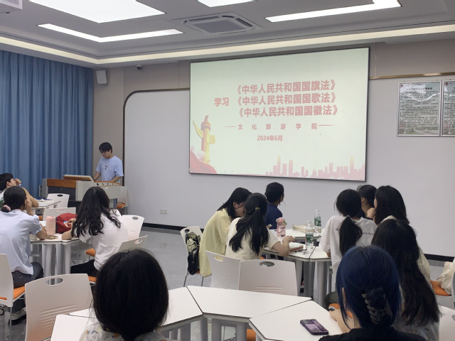 為進(jìn)一步提高師生對國旗、國徽、國歌的認(rèn)識,增強其維護(hù)國旗、國歌、國徽尊嚴(yán)的意識,弘揚愛國主義精神,培育和踐行社會主義核心價值觀,文化旅游學(xué)院于6月20日-26日組織開展了《中華人民共和國國旗法》《中華人民共和國國歌法》《中華人民共和國國徽法》學(xué)習(xí)宣傳教育活動。