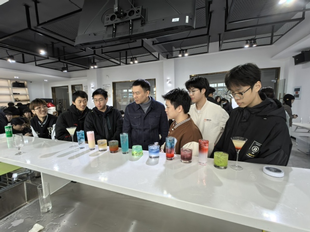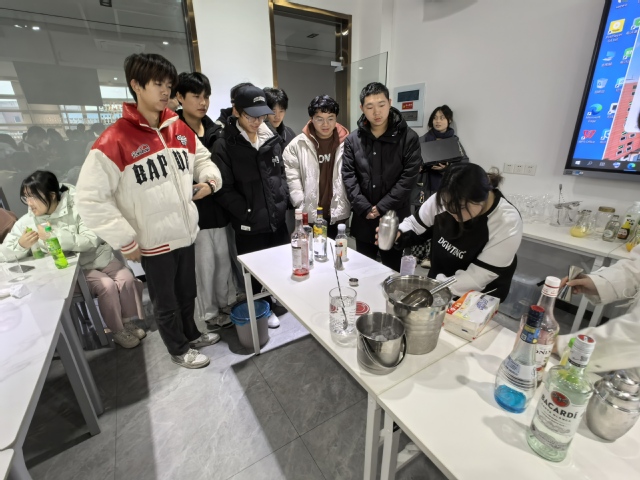 活動上,輔導員屈的鵬對商學院、交通工程學院參加活動學生表示歡迎。李強老師向學生們詳細介紹了調(diào)酒的基本知識,包括酒的分類、調(diào)酒工具的使用、調(diào)酒的基本原則等。在李強老師的指導下,學生們目睹并學習經(jīng)典調(diào)酒的制作過程,如莫吉托、海洋等,了解了每種酒品背后的故事及其代表的文化意義?;顒舆€設(shè)置了交流環(huán)節(jié),讓參與者分享自己對調(diào)酒的看法、品味心得,促進了社區(qū)成員間的相互了解和情感聯(lián)結(jié)。