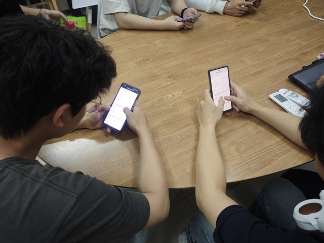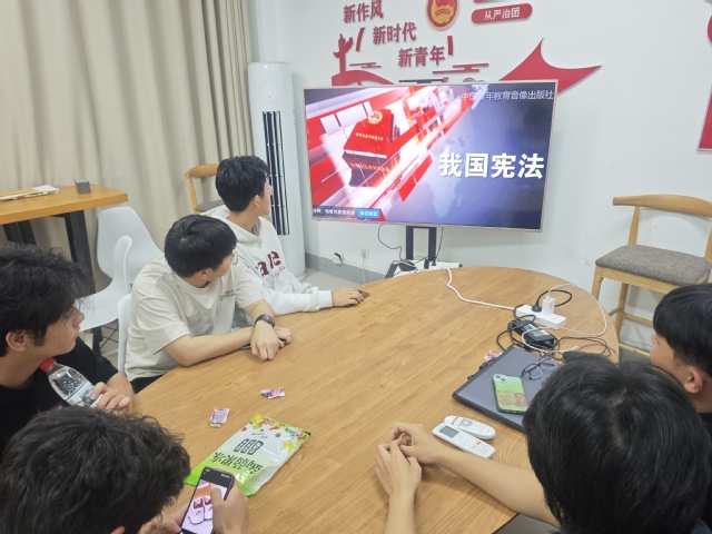 學(xué)生在躬行社區(qū)觀(guān)看法治宣傳片