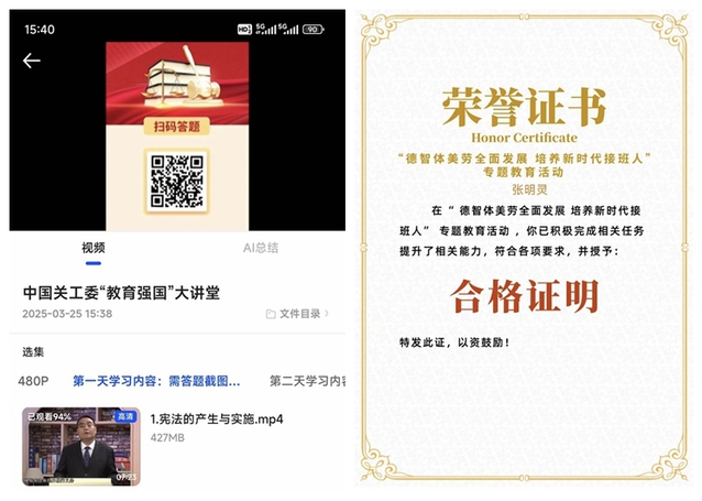 此次活動(dòng)以“法治精神融入日常”為核心目標(biāo),依托線(xiàn)上學(xué)習(xí)平臺(tái),組織學(xué)生觀(guān)看法治教育專(zhuān)題課程資源,通過(guò)案例解析、法律條文講解等模塊,系統(tǒng)普及憲法、民法典及校園安全相關(guān)法律法規(guī)。并通過(guò)互動(dòng)答題檢驗(yàn)學(xué)習(xí)成效,參與者完成測(cè)試后即可獲得電子學(xué)習(xí)證書(shū),有效激發(fā)了學(xué)生們的參與熱情,部分班級(jí)也形成“法治學(xué)習(xí)小組”,主動(dòng)分享法律知識(shí),強(qiáng)化自身法治行為規(guī)范意識(shí),營(yíng)造了學(xué)法用法的良好氛圍。